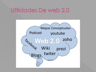El documento discute las diferencias de perspectiva entre estudiantes y profesores sobre cómo las herramientas web 2.0 han contribuido a la educación. Mientras que los estudiantes ven el aprendizaje como más eficiente debido al trabajo colaborativo, los profesores tienen un papel menos protagónico. También explica la evolución de la web, desde la versión 1.0 donde los usuarios solo podían consumir contenido estático hasta la 2.0 donde pueden generar e intercambiar información de forma activa a través de blogs, wikis y redes