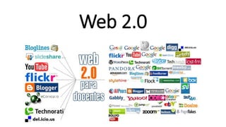 La Web 2.0 se caracteriza por facilitar la interacción y colaboración entre usuarios para generar y compartir contenido. Permite a los usuarios participar activamente como creadores de contenido en lugar de limitarse a la observación pasiva. Algunas características clave incluyen el auge de blogs, redes sociales, contenido generado por usuarios y etiquetado colectivo.