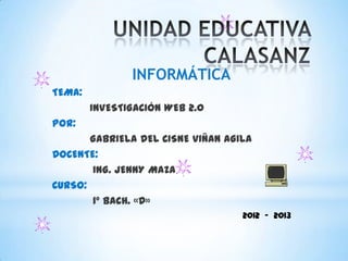 La Web 2.0 se refiere a la transición de aplicaciones tradicionales a aplicaciones en línea enfocadas en el usuario final que fomentan la colaboración. Algunas características clave son que la web es una plataforma, es funcional, ligera y social. Existen numerosas herramientas de la Web 2.0 como WordPress, Flickr, Quizlet y Cmap que pueden usarse en el aula para fomentar la colaboración y el aprendizaje.