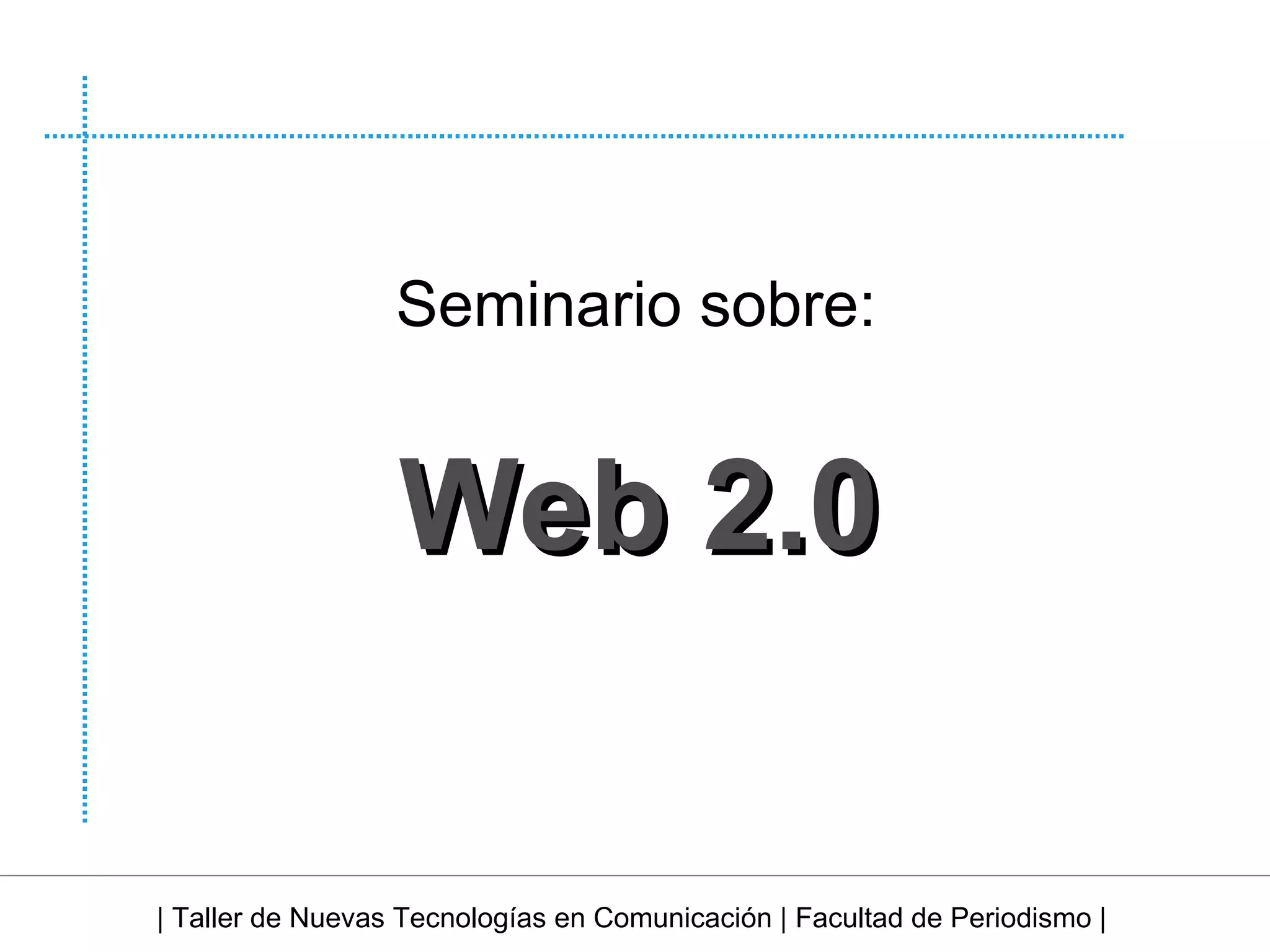 El documento aborda la evolución de la web, centrándose en la transición de Web 1.0, caracterizada por sitios estáticos, a Web 2.0, que enfatiza la interacción del usuario y el contenido generado por el mismo. Se analiza cómo Web 2.0 transforma aplicaciones tradicionales y se inspira en enfoques más accesibles y dinámicos, como blogs y comunidades en línea. Además, se menciona la tecnología híbrida relacionada con Web 2.0 que incluye XHTML y AJAX.