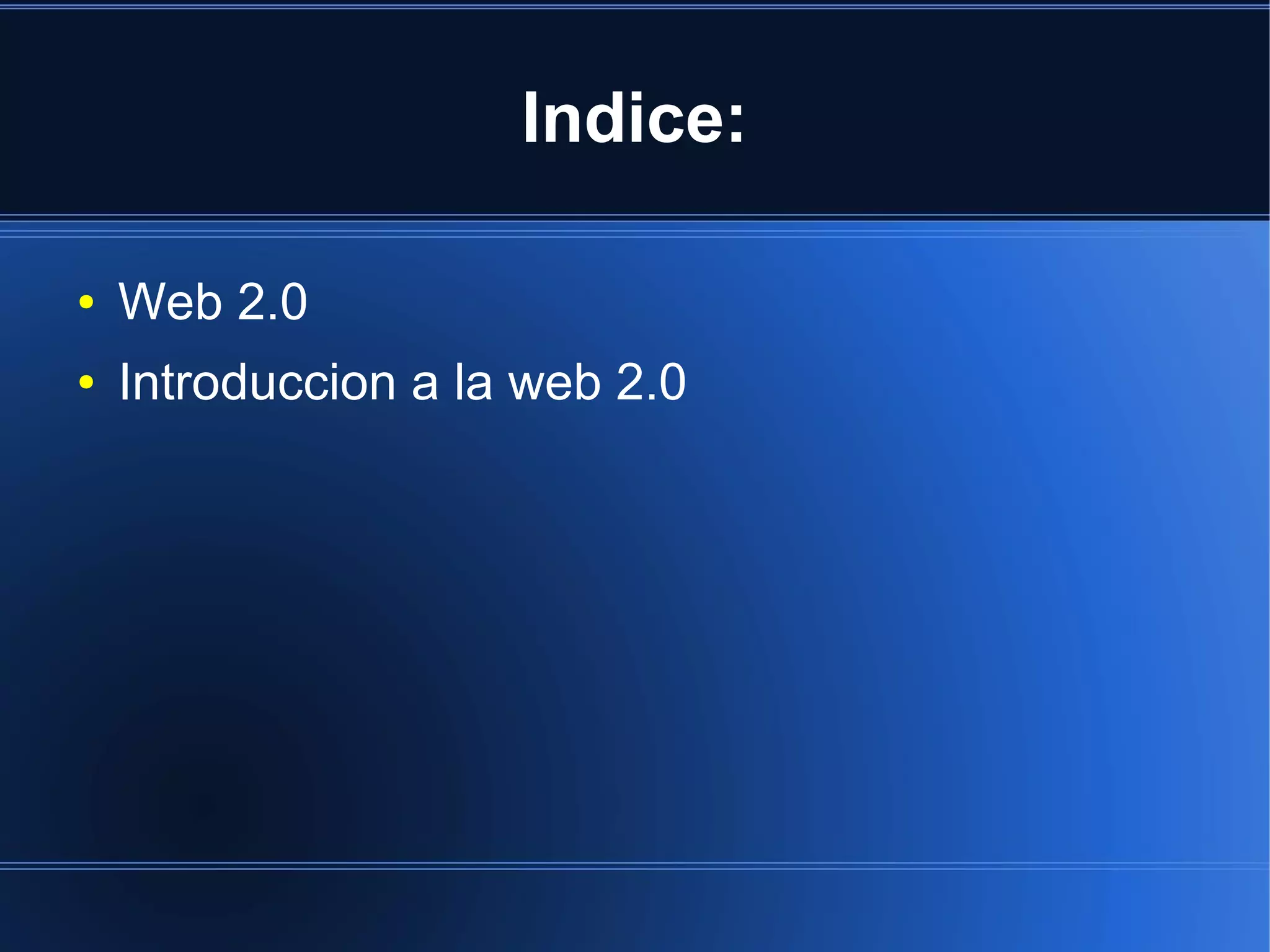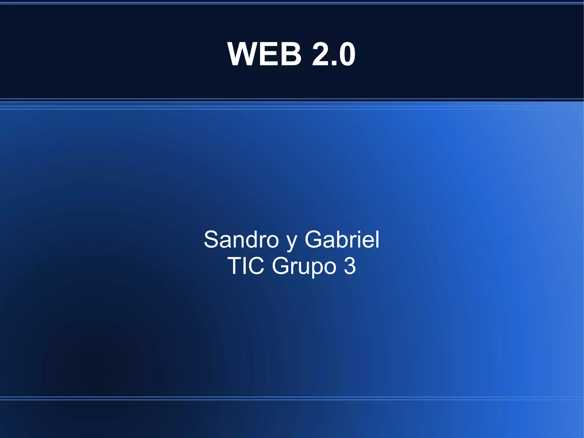 La Web 2.0 se refiere a sitios web que facilitan el compartir información y la colaboración entre usuarios, permitiendo que los usuarios interactúen y creen contenido en comunidades virtuales. Algunos ejemplos son blogs, wikis, redes sociales y servicios de alojamiento de videos. A diferencia de la Web 1.0 de páginas estáticas, la Web 2.0 se centra en el usuario y permite que los usuarios creen y modifiquen contenido de forma dinámica. La Web 2.0 democratizó los medios al permitir