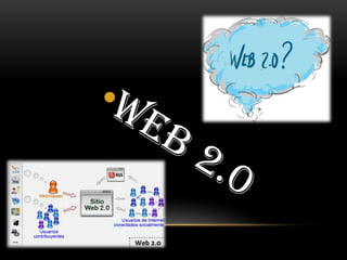 El documento describe las características de la Web 2.0, incluyendo que permite a los usuarios interactuar y crear contenido, en comparación con sitios web estáticos. Explica que la Web 2.0 no es una tecnología sino una actitud para desarrollar contenido en internet de manera colaborativa. También analiza algunas consecuencias como la democratización de los medios y que los usuarios son propietarios del contenido que crean en la web.