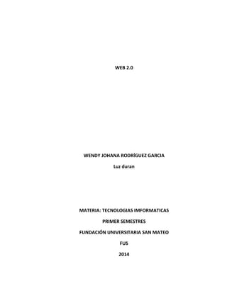 Este documento describe la Web 2.0, incluyendo sus características como la participación de los usuarios, la colaboración y la inteligencia colectiva. Explica conceptos como blogs, wikis, redes sociales y herramientas que permiten la publicación de contenido generado por los usuarios. También define términos relacionados como beta, enlace, CMS y marketing 2.0.