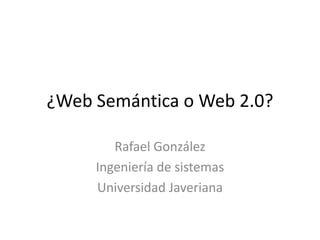 El documento compara y contrasta la Web Semántica y la Web 2.0, y discute cómo los usuarios de la web han evolucionado de Homo sapiens a Homo zappiens. También describe algunas aplicaciones populares de la Web 2.0 como LinkedIn, Flickr y Delicious, y contrasta las habilidades y estilos de aprendizaje de Homo zappiens versus Homo sapiens.