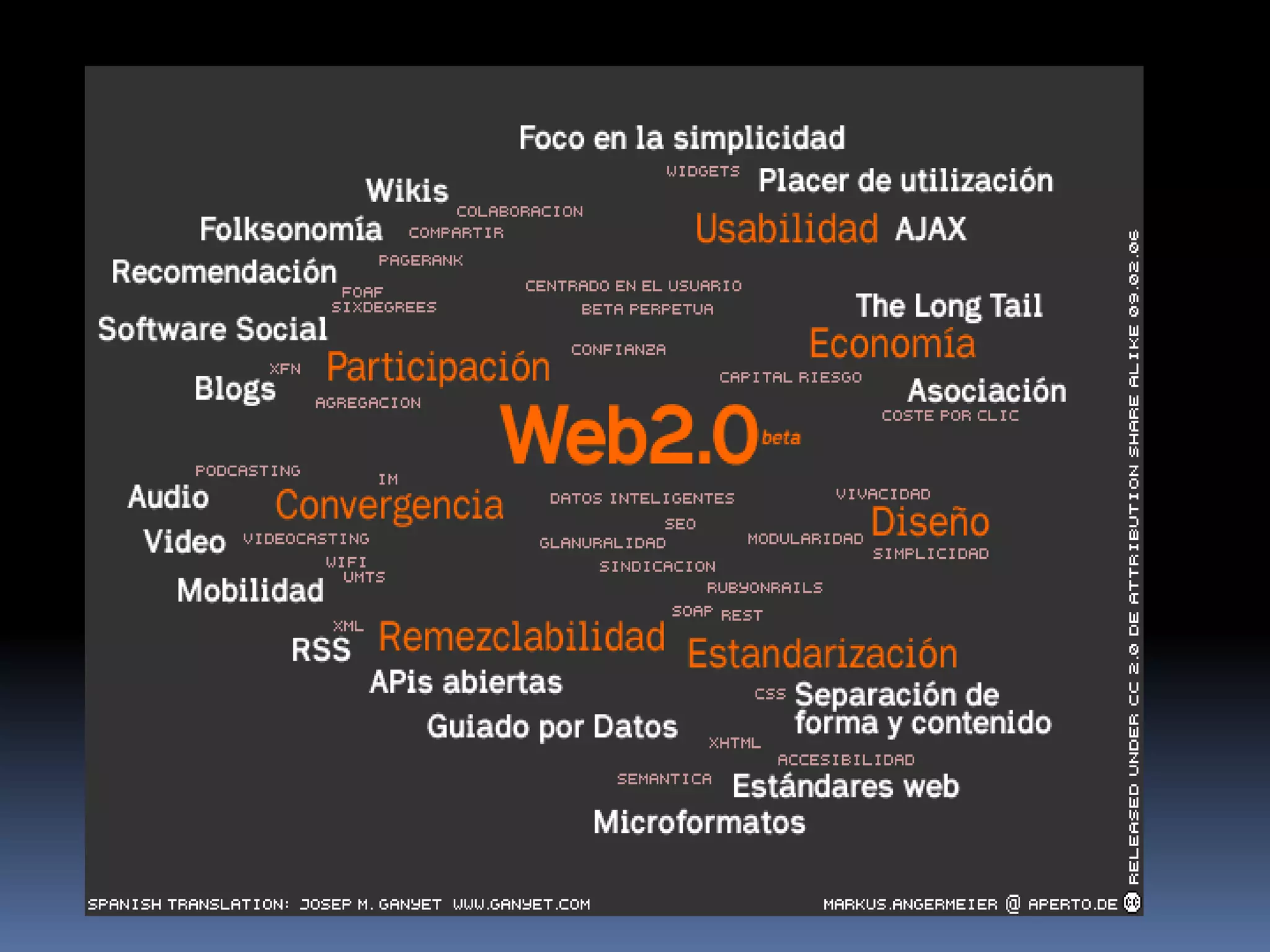 Tim O'Reilly acuñó el término "Web 2.0" en 2005 tras analizar cómo la web había evolucionado después de la burbuja de las empresas punto com para dar lugar a aplicaciones y sitios web que aparecían con regularidad y donde los datos eran lo más importante. Las características clave de la Web 2.0 incluyen el uso de la web como plataforma, las redes sociales participativas formadas por usuarios independientes y el mejoramiento continuo de la tecnología, las redes sociales, la sindicación de contenidos y los servicios web