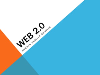 La Web 2.0 se refiere a la transición de las páginas web tradicionales a aplicaciones web interactivas diseñadas para los usuarios. Surge en 2003 y se caracteriza por el auge de blogs, redes sociales y herramientas que permiten una mayor interacción entre usuarios y generación de contenido. La Web 2.0 incluye plataformas para publicar como Blogger y Facebook, wikis como Wikipedia, y portales para compartir fotos, audio y video como Flickr y YouTube.