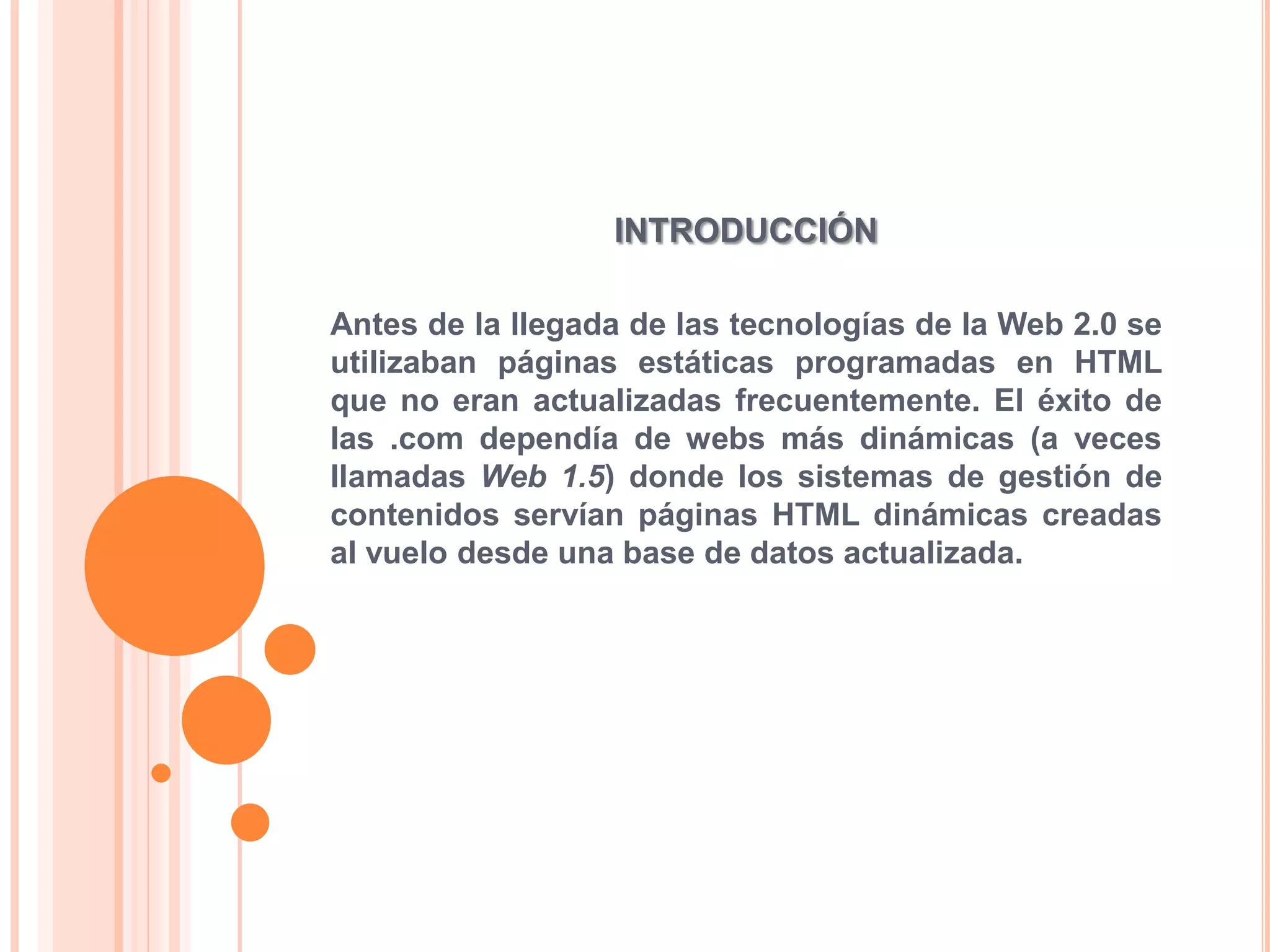 Antes de la Web 2.0, las páginas web eran estáticas y no se actualizaban con frecuencia, mientras que el éxito de las empresas dependía de webs más dinámicas creadas a través de sistemas de gestión de contenidos. La Web 2.0 facilita el compartir información y la colaboración a través de aplicaciones como redes sociales, wikis y blogs, así como servicios de alojamiento de videos y comunidades web.