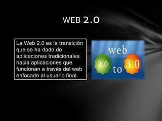 La Web 2.0 permite aplicaciones enfocadas al usuario final que funcionan a través del web. Se basa en la arquitectura existente de servidores web pero con un mayor énfasis en el software dorsal. La Web Semántica es una web extendida dotada de mayor significado, desarrollada con lenguajes universales que permiten a los usuarios encontrar respuestas más rápido gracias a una mejor estructuración de la información.
