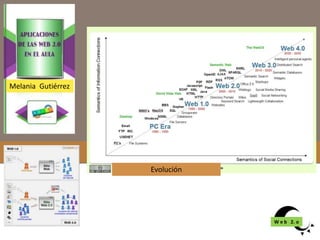 El documento describe el origen y concepto de la Web 2.0. Se introdujo el término en 2004 para referirse a la tecnología web que permitía una mayor interacción entre usuarios a través de redes sociales, blogs y wikis, lo que llevó a que las páginas web pasaran de ser estáticas a dinámicas y participativas.