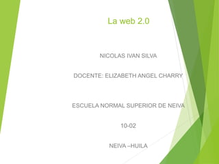 Este documento describe la Web 2.0 y algunas de sus aplicaciones principales. La Web 2.0 permite a los usuarios participar y contribuir al contenido en línea en lugar de ser solo consumidores pasivos. Algunas herramientas mencionadas incluyen blogs, wikis, SlideShare, YouTube, Flickr, Bubbl.us y Scrapblog, que permiten compartir diferentes tipos de contenido como presentaciones, videos, fotos e imágenes mentales.