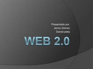 El documento define Web 2.0 como la evolución reciente de la World Wide Web enfocada en aplicaciones que facilitan el compartir información y la colaboración entre usuarios a través de comunidades en línea, blogs, wikis y otras herramientas. El término fue acuñado en 2004 para describir cambios en cómo los desarrolladores y usuarios usan la web, aunque su creador cuestionó que fuera realmente una nueva versión. El documento luego lista varias herramientas populares de la Web 2.0.