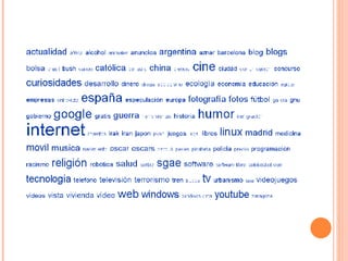 El documento describe las características clave de la Web 2.0, incluyendo que se basa en comunidades de usuarios que colaboran y comparten información de forma dinámica. La Web 2.0 fomenta que los usuarios produzcan y publiquen contenido fácilmente y que la información esté en constante cambio a través de etiquetas y clasificaciones creadas por los propios usuarios. También destaca las diferencias entre la Web 1.0, con información centralizada y estática, y la Web 2.0, con información descentralizada y
