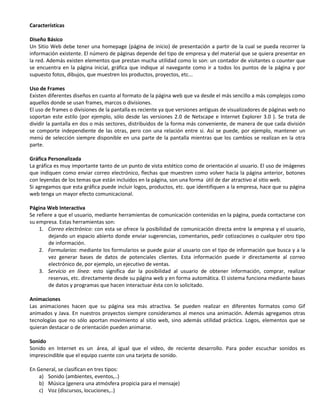 El documento resume la historia y características principales de la Web. Comenzó en 1989 cuando Tim Berners-Lee propuso un sistema basado en nodos y enlaces para compartir información en el CERN. En los años 90 creció su popularidad y surgieron navegadores como Mosaic y Netscape. La Web 2.0 trajo contenidos generados por usuarios y aplicaciones en línea. Las páginas pueden incluir frames, gráficos, interactividad y sonido para mejorar la experiencia del usuario.