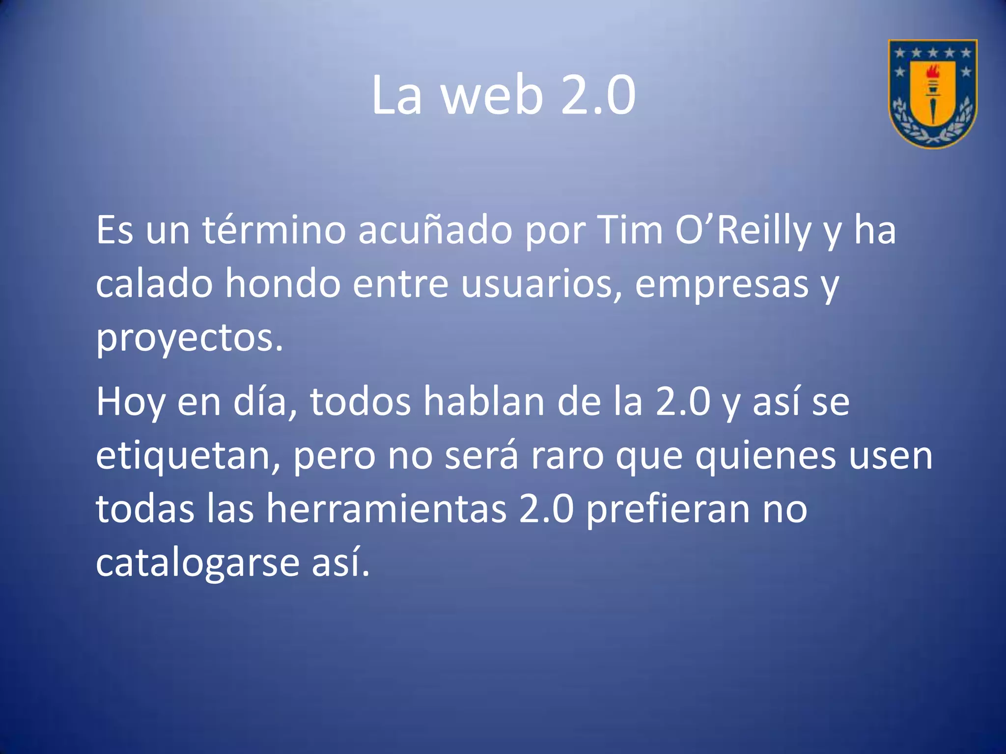 La web 1.0 permitía principalmente la lectura de páginas estáticas controladas por administradores, mientras que la web 2.0 facilita la interactividad, aprendizaje colaborativo y libertad de edición a través de páginas dinámicas y contenidos abiertos creados por usuarios. La web 2.0 ofrece mayores ventajas como el acceso a información en diferentes formatos y la posibilidad de creación de contenido. En educación, la web 2.0 puede potenciar principios pedagógicos a través de la socialización