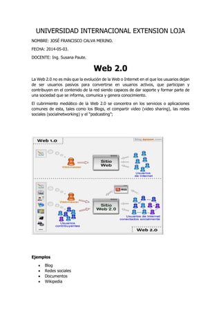 La Web 2.0 permite a los usuarios participar activamente en la creación y distribución de contenido en lugar de ser solo consumidores pasivos. Algunas aplicaciones clave de la Web 2.0 incluyen blogs, redes sociales, wikis y compartir videos. La Web 3.0 intenta definir el significado de las palabras y hacer que el contenido web sea más comprensible para las máquinas a través de la inteligencia artificial y la web semántica.