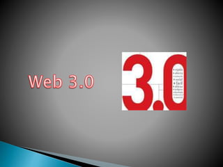 La Web 2.0 se refiere a sitios web interactivos que permiten a los usuarios compartir e interactuar con información fácilmente. Ejemplos incluyen blogs, wikis y redes sociales. La Web 3.0 se refiere a una evolución hacia una web con datos mejor definidos y estructurados que permitirá respuestas más rápidas y sencillas a las preguntas de los usuarios, posiblemente a través de inteligencia artificial y realidad virtual. Algunas compañías ya están implementando tecnologías de Web 3.0 como el pro