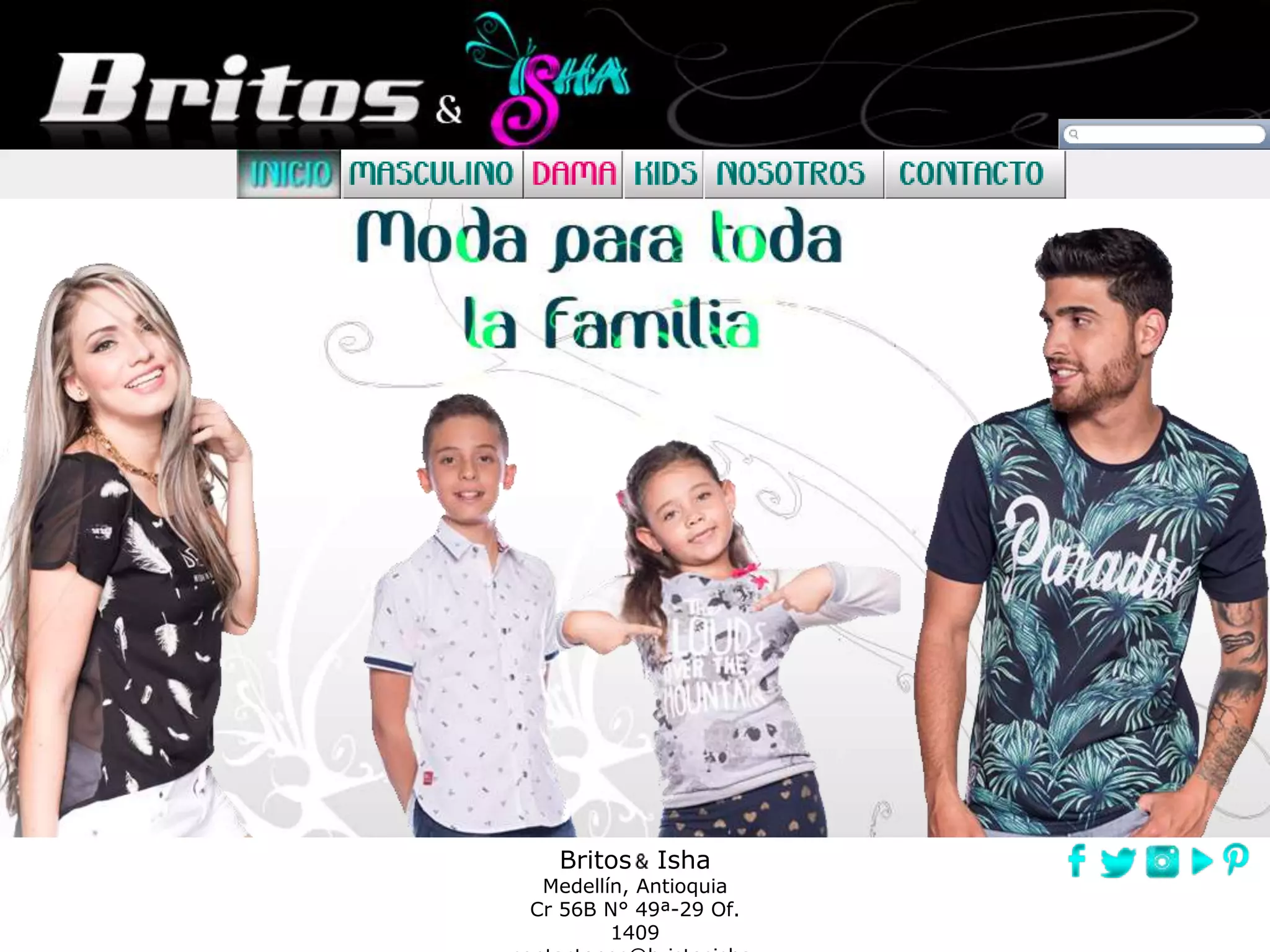 El documento presenta una empresa de moda llamada Britos Isha, con sede en Medellín, Colombia. Incluye una lista de productos como camisetas, blusas y camisas con sus respectivos códigos de referencia. También presenta información sobre la misión, visión y valores de la empresa, así como sus objetivos de satisfacer las necesidades de moda de sus clientes y continuar innovando.