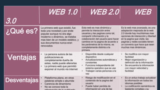 La web 1.0 fue pionera en permitir la publicación de contenido en Internet de forma estática. La web 2.0 introdujo la interactividad y colaboración entre usuarios, permitiendo compartir y modificar información de manera dinámica. La web 3.0 representa una versión aún más avanzada con mayor interacción, donde las páginas y redes sociales están más integradas entre sí para proporcionar experiencias más personalizadas e inteligentes a los usuarios.