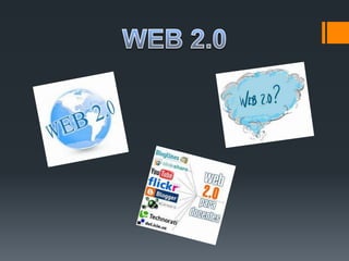 La Web 2.0 se refiere a sitios web que facilitan el compartir información y la colaboración entre usuarios para crear contenido. Los usuarios pueden interactuar y colaborar generando contenido en comunidades virtuales, a diferencia de sitios estáticos donde solo observan. La Web 2.0 incluye blogs, wikis y redes sociales donde los usuarios comparten información.
