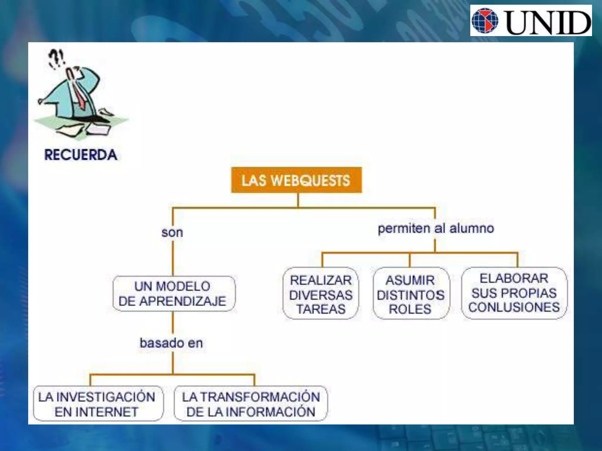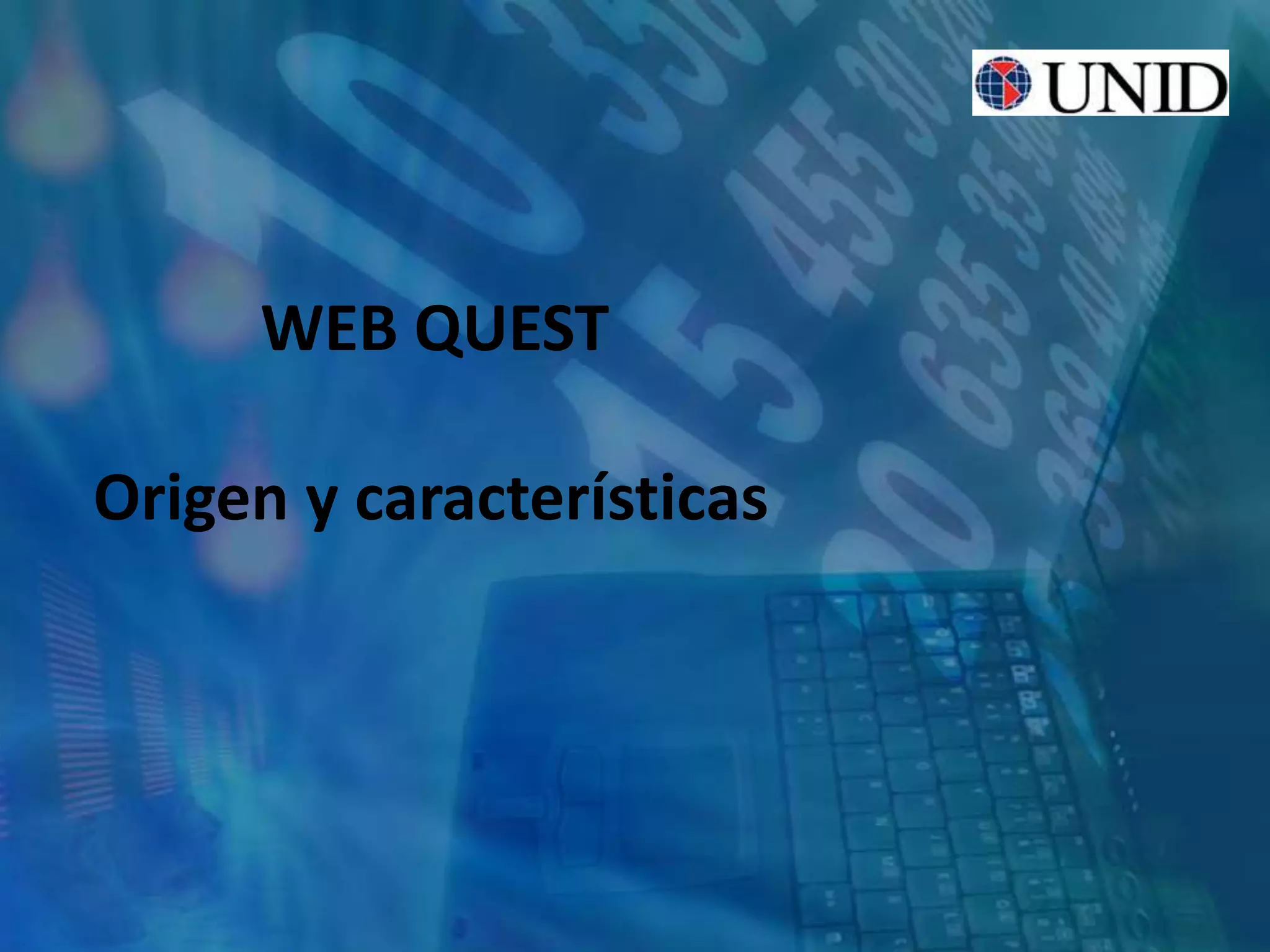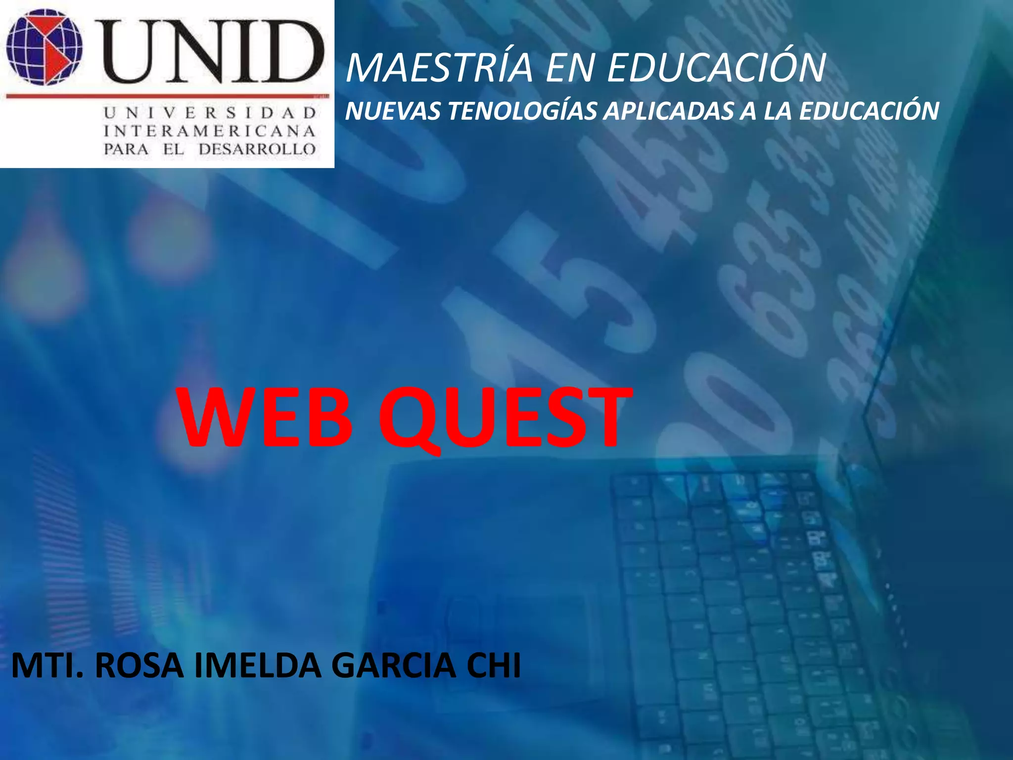 Este documento describe las Web Quest, una actividad de aprendizaje creada en 1995 que involucra la búsqueda de información en Internet. Explica que una Web Quest tiene elementos como introducción, tarea, proceso, recursos, evaluación y conclusión. El objetivo es que los estudiantes aprendan a través de la investigación guiada de recursos en línea seleccionados por el maestro. También ofrece consejos para planear, evaluar y crear efectivamente una Web Quest.