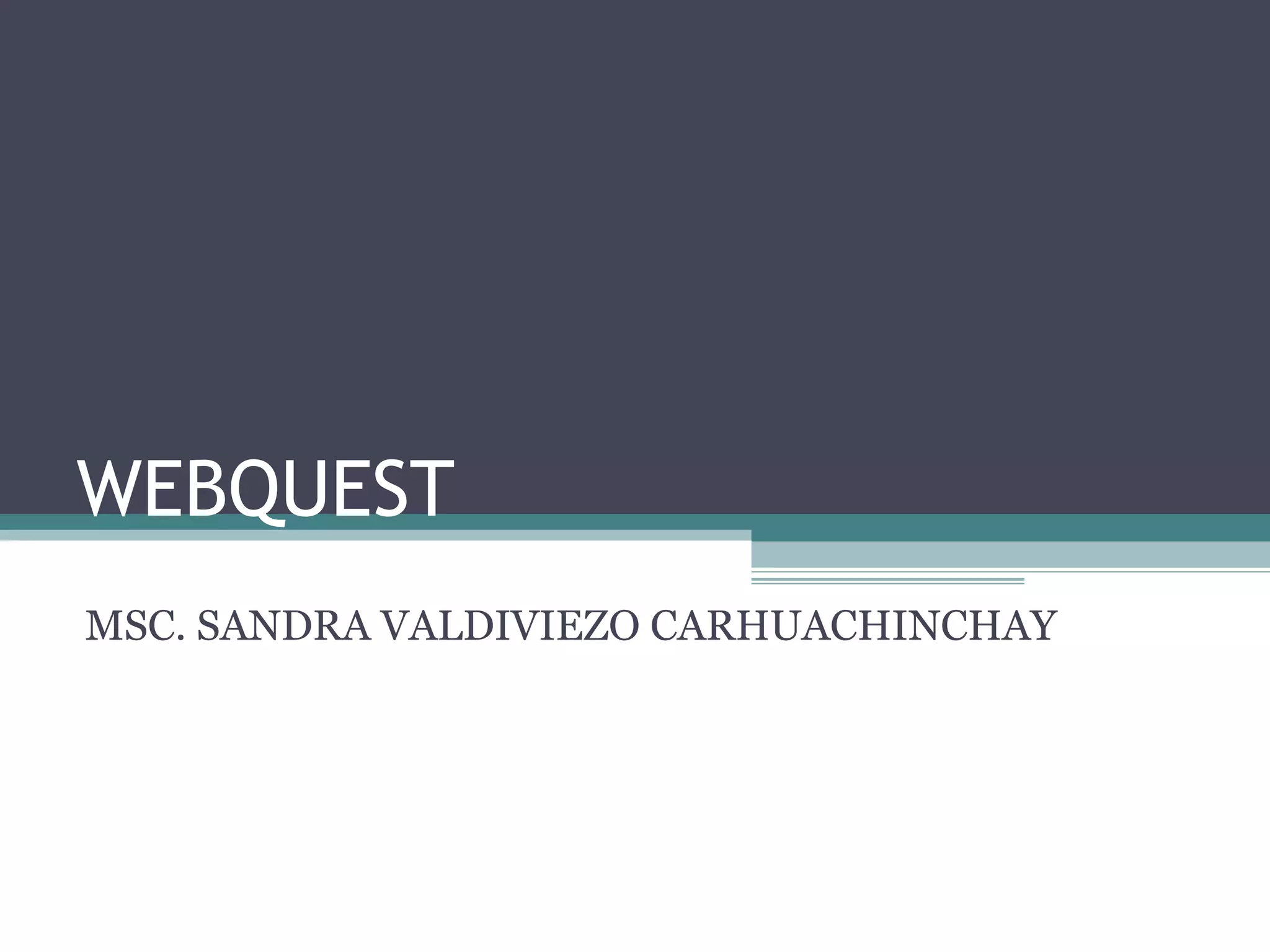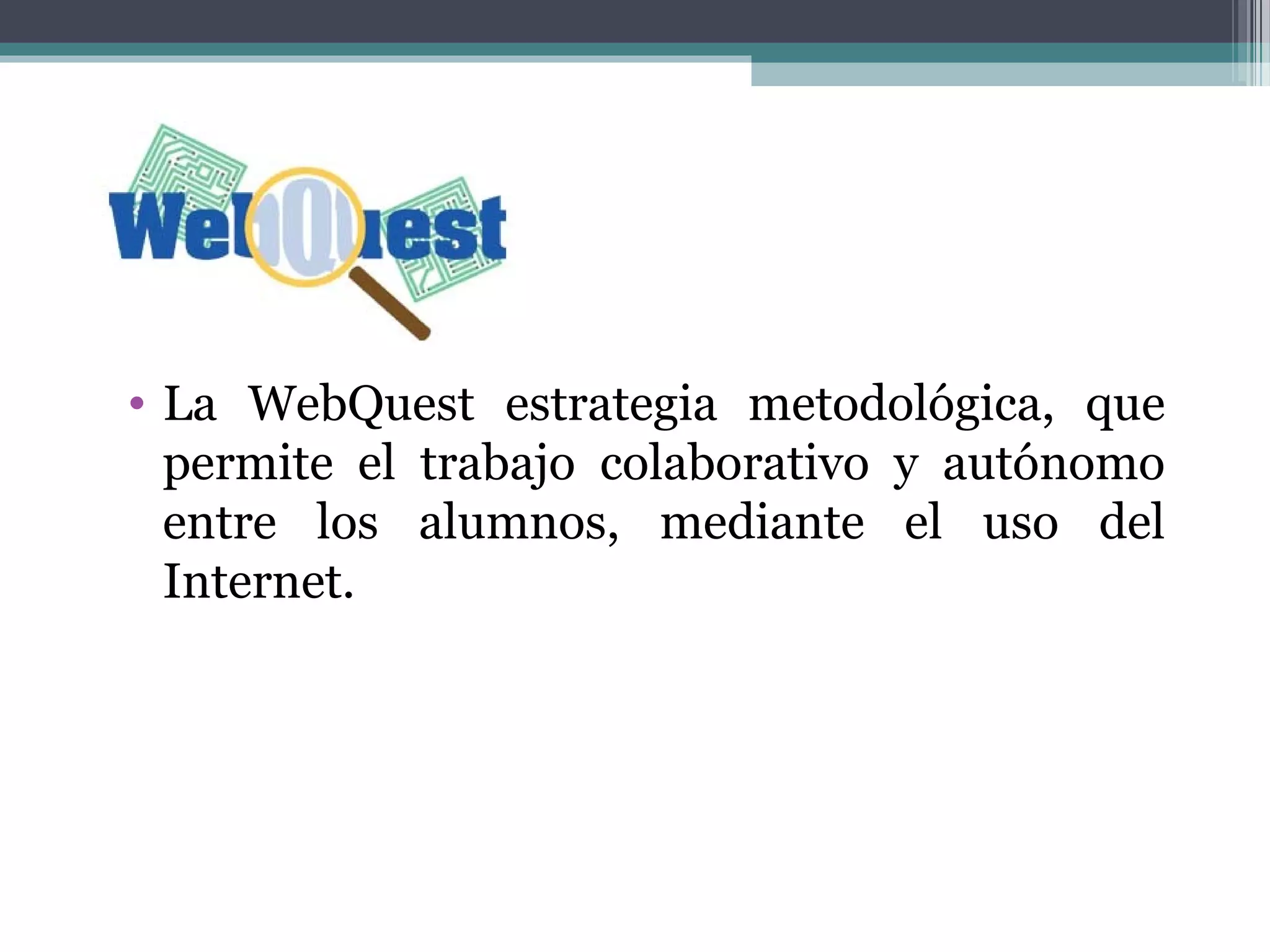La WebQuest es una estrategia metodológica que permite el trabajo colaborativo y autónomo de los estudiantes mediante el uso de Internet. Una WebQuest típica contiene una introducción, tarea, proceso, recursos, evaluación y conclusión. Hay herramientas en línea que facilitan la creación de WebQuests.