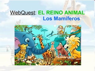 Este documento presenta una WebQuest sobre los mamíferos. Los estudiantes deben aprender sobre el concepto, características, alimentación y hábitats de los mamíferos. Trabajarán en grupos para investigar esta información en línea y presentar sus hallazgos a compañeros de cursos menores, ayudando luego a crear un pequeño museo sobre los mamíferos en el aula. Serán evaluados a través de una prueba, su presentación oral y participación en el proyecto del museo.