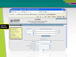 El documento habla sobre las diferentes fuentes para encontrar información en Internet, incluyendo buscadores, metabuscadores, motores de búsqueda, directorios y repositorios digitales. Explica las características y ejemplos de cada uno, destacando que los buscadores permiten encontrar información a través de palabras clave, mientras que los directorios y repositorios digitales ofrecen información organizada por temas.
