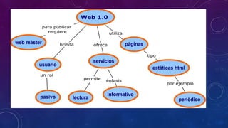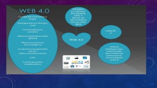 La Web 1.0 permitía a los usuarios solo leer información estática, la Web 2.0 permitió el intercambio de información e interacción entre usuarios en redes sociales, y la Web 3.0 optimizó el acceso y el intercambio de información facilitando las actividades de los usuarios. La Web 4.0 se describe como un avance que facilita la investigación a través de un sistema operativo tan rápido como el cerebro humano.