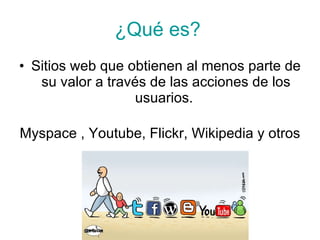 El documento describe el periodismo en la era de la Web 2.0, donde los usuarios ayudan a crear y compartir contenido. Explica sitios como MySpace, YouTube y Flickr que obtienen valor a través de las acciones de los usuarios. También describe cómo periodistas han usado Google Maps para crear sitios que combinan mapas con información relevante. Finalmente, discute el significado de la Web 2.0 para el periodismo, notando que los lectores ahora quieren participar creando, compartiendo y comentando contenido en sitios de noticias.