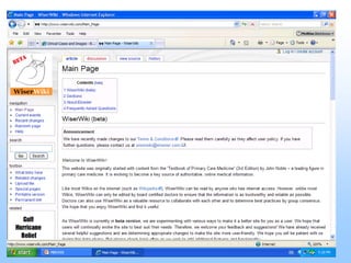 Este documento describe cómo la Web 2.0 y las nuevas tecnologías pueden aplicarse a la medicina de urgencias. Explica que la Web 2.0 permite la interacción y actualización en tiempo real de contenido generado por usuarios, y proporciona ejemplos como YouTube, Facebook y blogs médicos. También discute algunas limitaciones como la falta de revisión editorial y la posibilidad de información cuestionable. Finalmente, sugiere formas en que los servicios de urgencias pueden aprovechar recursos en línea y móviles para mejorar la educ
