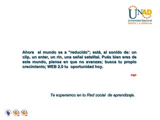 El documento describe las herramientas de la Web 2.0 como Voxopop y los Entornos Personales de Aprendizaje (PLE) que pueden utilizarse para mejorar la tutoría virtual. Se explica cómo Voxopop permite debates y conversaciones en línea y los PLE permiten a los estudiantes controlar y gestionar su propio aprendizaje a través de servicios web y redes sociales. El documento concluye animando a aprender a aprender e innovar utilizando estas tecnologías modernas de forma saludable.