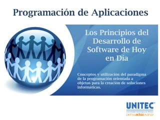 El documento presenta un webinar sobre programación orientada a objetos, dirigido por el Lic. Luis Ernesto Rubio Torres, que explora los principios de desarrollo de software moderno. Se enfoca en cómo se estructuran los programas y la creación de soluciones informáticas, utilizando ejemplos de código y clases. Además, se discuten conceptos clave a través de ejemplos prácticos y teóricos.