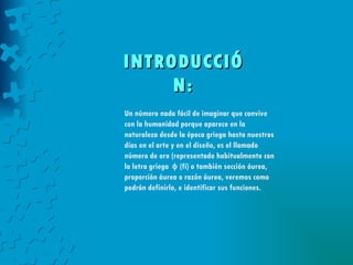 Este documento presenta una webquest sobre las proporciones áureas dirigida a estudiantes de segundo año de secundaria. Los estudiantes aprenderán sobre el número áureo, construirán un compás áureo, medirán objetos para verificar las proporciones áureas, diseñarán una tarjeta de presentación siguiendo las proporciones áureas, y escribirán un informe con sus conclusiones. El proceso incluye leer sobre proporciones áureas en el arte, ver un video, construir el compás, medir objetos