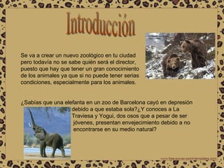 Este documento presenta una actividad para estudiantes de 4o grado sobre la creación de un zoológico. Los estudiantes trabajarán en grupos para crear un mural que incluya los animales del zoológico, su clasificación, hábitat, dieta y la diferenciación entre animales domésticos y salvajes. La actividad se llevará a cabo en 4 sesiones para la búsqueda de información, creación del mural y presentación. El objetivo es que los estudiantes aprendan sobre los animales y las responsabilidades