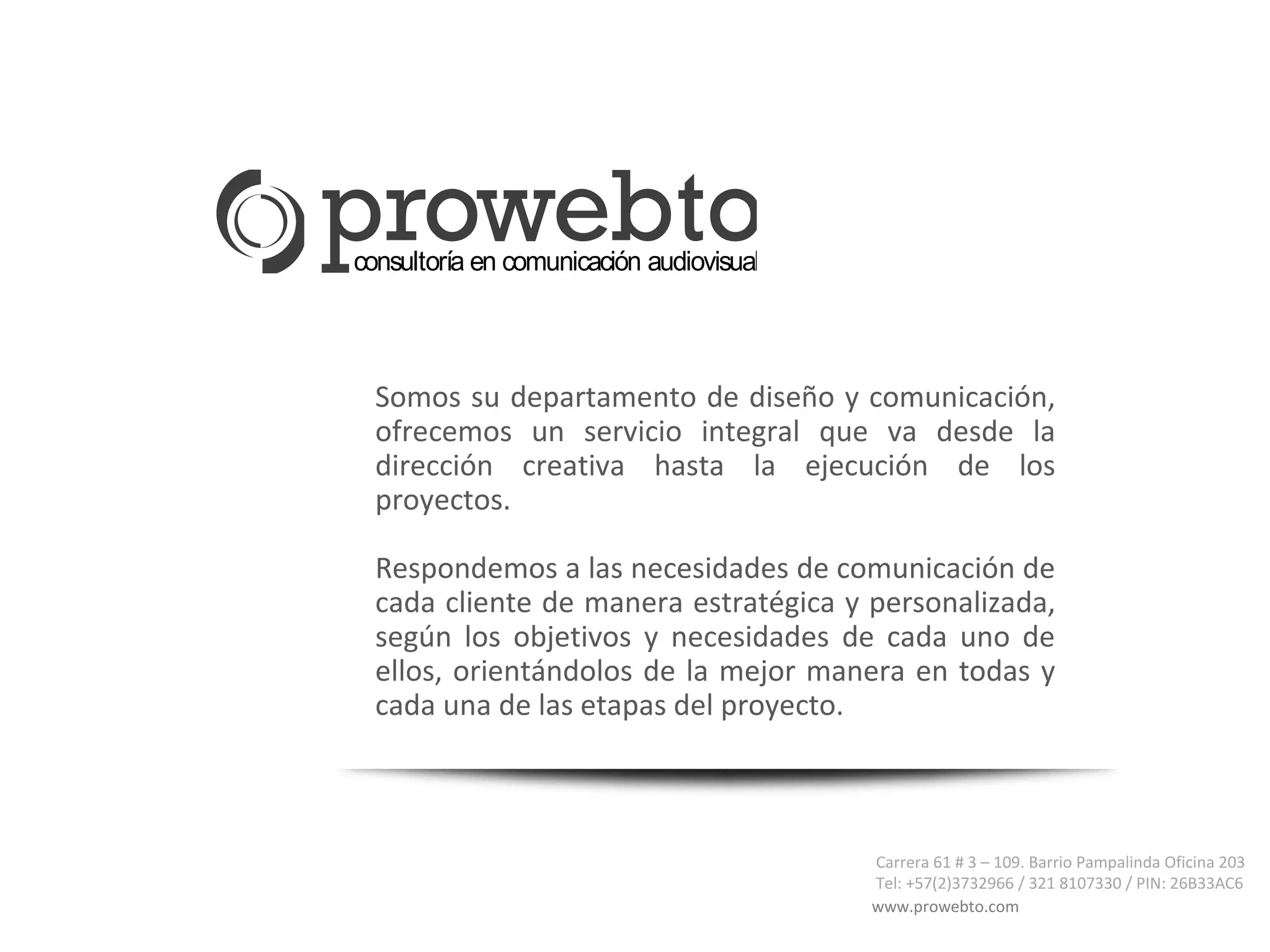 Este documento ofrece servicios de diseño y comunicación, incluyendo dirección creativa y ejecución de proyectos de comunicación. El consultor responde a las necesidades de comunicación de cada cliente de manera estratégica y personalizada, orientándolos en todas las etapas del proyecto.