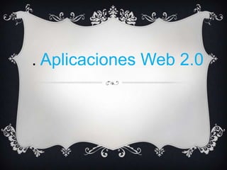 Este documento describe las aplicaciones web 2.0, que permiten a los usuarios compartir información, interactuar y colaborar para crear contenido de forma colectiva. Explica la diferencia entre la web 1.0 y 2.0, las ventajas y desventajas de la web 2.0, y los tipos de aplicaciones como redes sociales, blogs, wikis y herramientas para generar contenido.