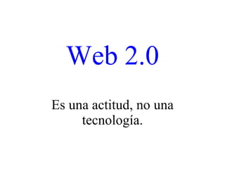 Web 2.0 es una actitud que aprovecha la inteligencia colectiva a través de la diversidad de opiniones y criterios independientes que surgen de la descentralización. El contenido se encuentra en la web y no en un solo dispositivo, y su desarrollo sigue un método de ensayo y error y programación ligera.