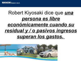 El documento habla sobre los beneficios de unirse a Nikken, una compañía de bienestar que ofrece productos para mejorar la salud y las finanzas. Nikken promueve una filosofía de los cinco pilares de la salud a través de productos de nutrición, ejercicio, descanso, ambiente y relajación. El modelo de negocios de Nikken permite a los consultores ganar ingresos al compartir los productos y construir una red de clientes. El plan de compensación ofrece varias formas de ganar dinero incluyendo comision