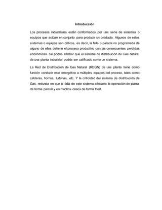 El documento describe los principios y ecuaciones para calcular el flujo de gas en tuberías, incluidas las ecuaciones de Weymouth y Panhandle. Explica conceptos como diámetro equivalente, distribución de flujo, correcciones por compresibilidad y diferencias de nivel, y cómo determinar longitudes y diámetros equivalentes. El objetivo es poder predecir con precisión el flujo de gas a través de sistemas de tuberías complejos.