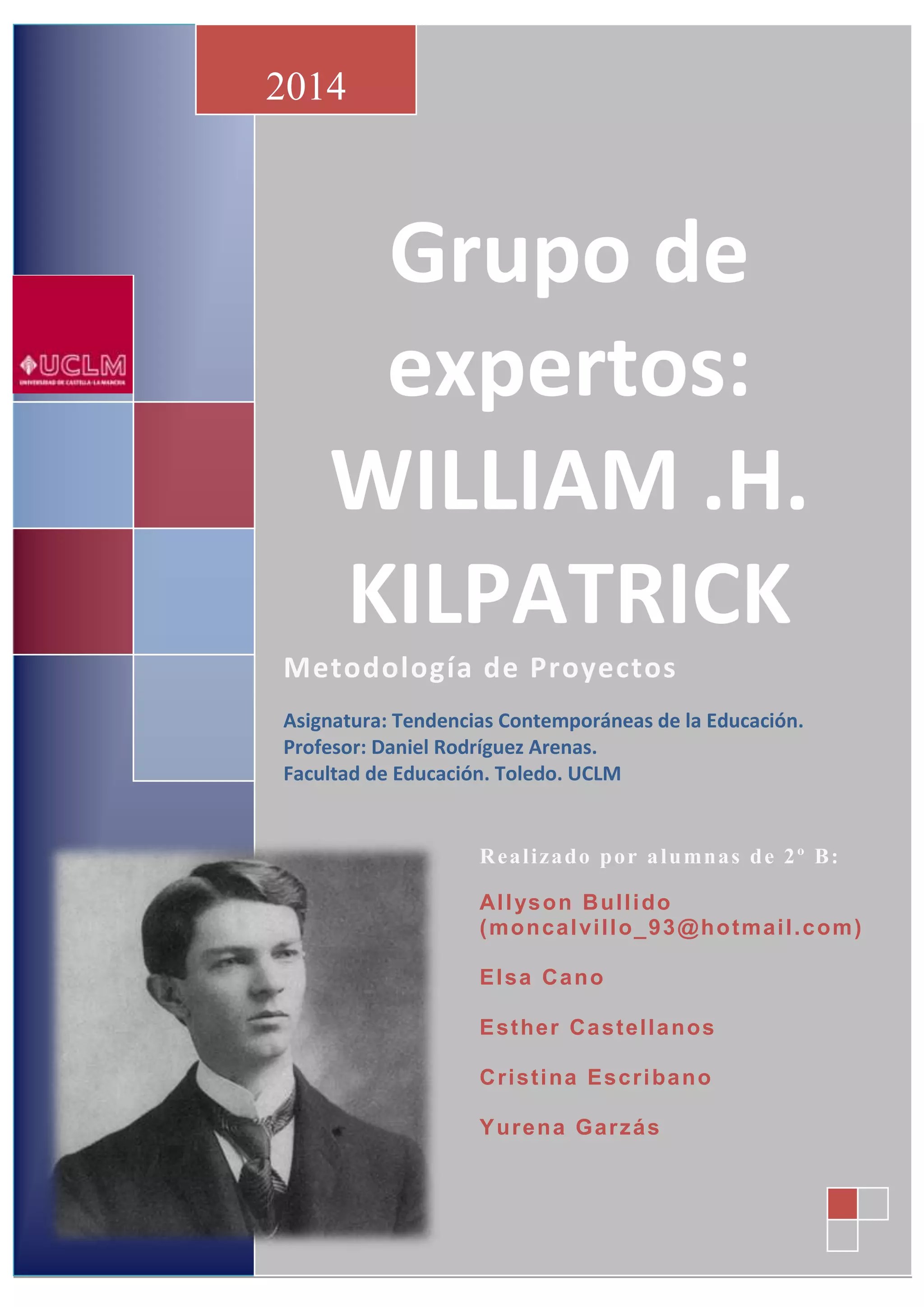 Este documento resume la teoría de la "Metodología de Proyectos" del pedagogo estadounidense William Heard Kilpatrick. Kilpatrick propuso que la educación debe partir de los intereses de los estudiantes y que el aprendizaje es más significativo cuando los estudiantes participan en la planificación, producción y evaluación de proyectos. El documento también discute los antecedentes de Kilpatrick en las teorías de Dewey y critica el método Montessori.