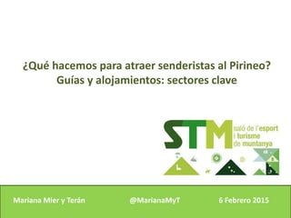 El documento aborda estrategias para atraer senderistas al Pirineo, enfatizando la necesidad de adaptar alojamientos y servicios a las demandas de los visitantes. Destaca la importancia del trabajo en red entre guías, alojamientos y tour operadores, así como la promoción a través de canales digitales. También menciona la falta de productos específicos de senderismo y la necesidad de una estrategia colectiva de marketing para mejorar la oferta turística en la región.