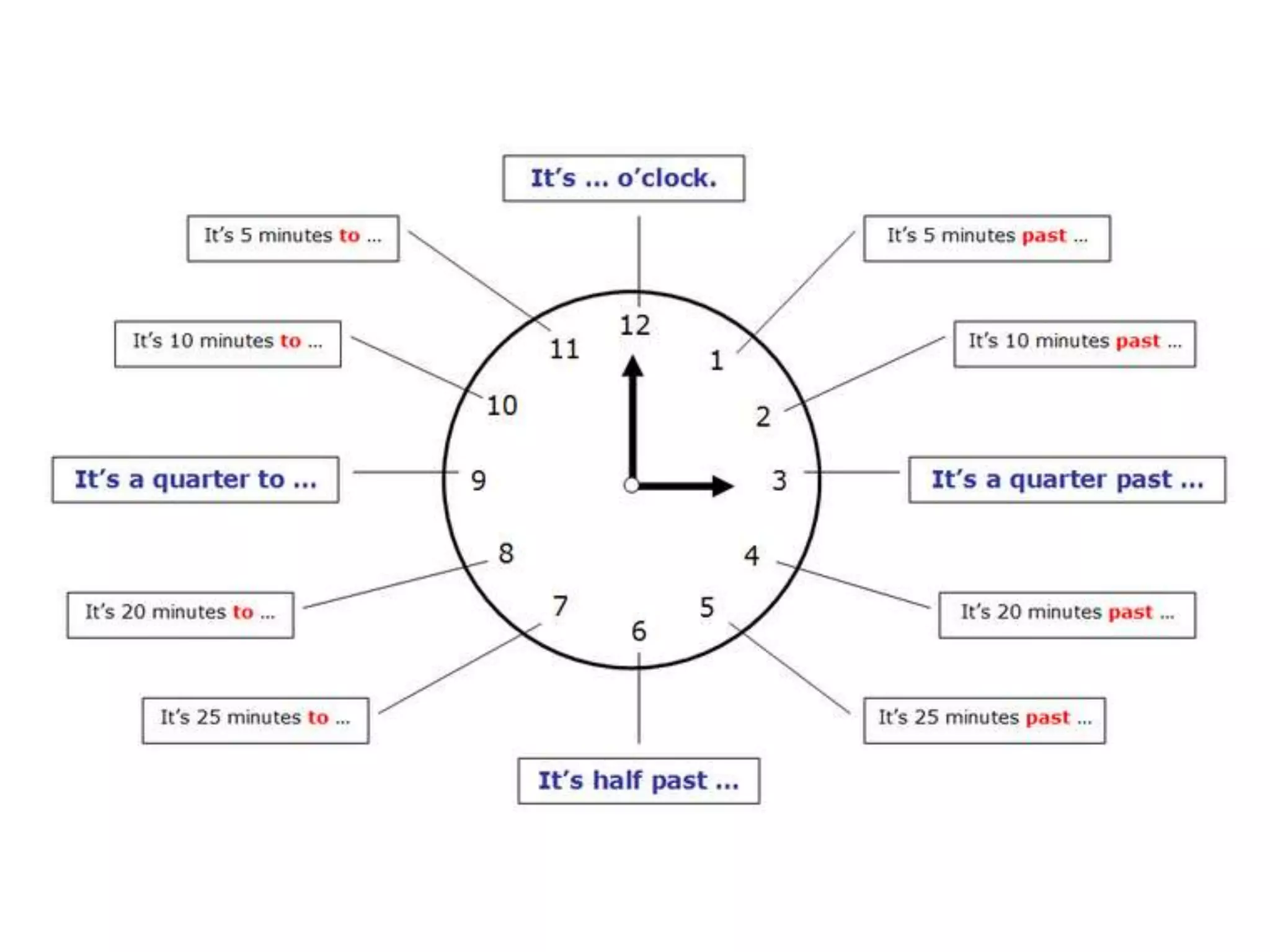 Frases relacionadas con cuartos pasados y cuartos para la hora.