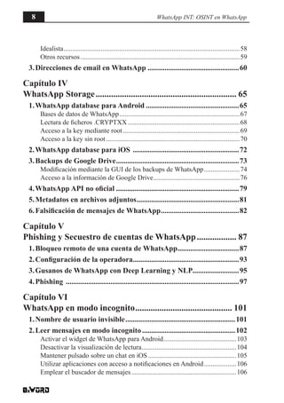 Este documento trata sobre el uso de WhatsApp para realizar investigaciones de inteligencia abierta (OSINT). Explica cómo seleccionar objetivos, recopilar información sobre ellos a través de redes sociales y otras fuentes, acceder a datos almacenados en WhatsApp como mensajes y contactos, y espiar cuentas de terceros. También cubre técnicas de phishing, secuestro de cuentas y modos de ocultar el estado en línea.