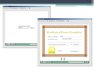 Este documento describe varios widgets que se pueden insertar en Adobe Captivate, incluyendo widgets para enviar correos electrónicos, mostrar páginas web, emitir certificados, crear casillas de verificación, mostrar listas desplegables, navegar entre diapositivas, proporcionar ayuda adicional, mostrar una barra de reproducción estilo Mac, crear preguntas de opción múltiple, incluir botones para avanzar y retroceder entre diapositivas, y mostrar un reloj.
