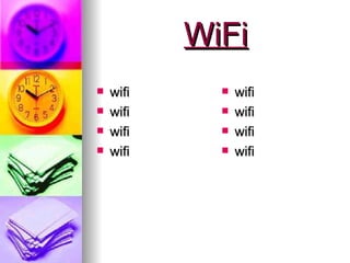 El documento habla sobre wifi de manera repetida y sin mucho contenido. Explica que se ha perdido el trabajo original sobre wifi y que se ha creado uno más simple para subirlo a la wiki.