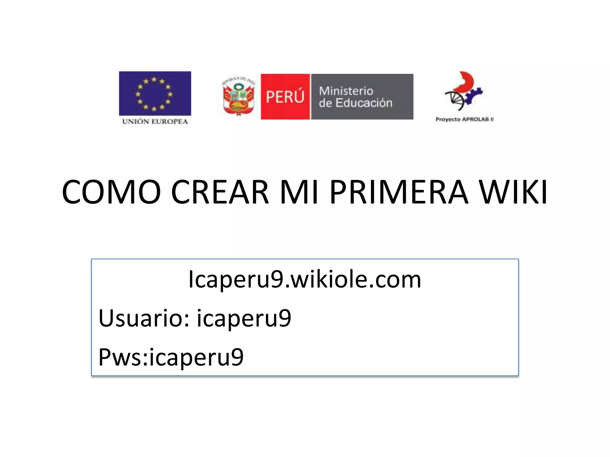 Para crear una wiki por primera vez, se debe ingresar a www.pbworks.com, seleccionar "Sign up" para crear una cuenta nueva o "Sign in" para iniciar sesión si ya se tiene una cuenta. Luego de completar los datos de registro, se ingresa a la página principal de la wiki donde se puede comenzar a editar páginas, invitar colaboradores y crear enlaces entre páginas para organizar la información de manera no lineal.