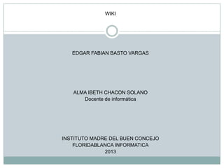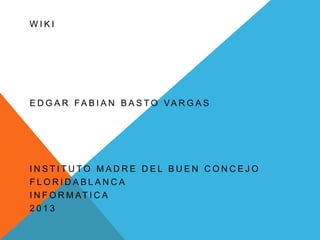 El documento habla sobre el origen y características de los wikis. Explica que el primer wiki fue creado por Ward Cunningham en 1995 para almacenar patrones de diseño. Los wikis permiten la edición y creación colaborativa de páginas de forma sencilla. Wikipedia es el wiki más grande, mientras que otros wikis son más pequeños y especializados.