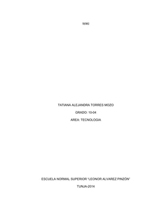 Este documento describe las características y uso de wikis. Explica que un wiki es un sitio web cuyas páginas pueden ser editadas por múltiples usuarios a través del navegador. Detalla algunos sitios como Wikispace que permiten crear wikis de forma gratuita y pasos básicos como registrarse, crear páginas, agregar archivos e imágenes, y editar contenido. También cubre funciones como historial de cambios y términos y condiciones de uso.