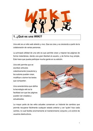 Una wiki es un sitio web colaborativo que permite a los usuarios crear y editar contenido de forma sencilla. La Wikipedia es un ejemplo exitoso de wiki, siendo la mayor enciclopedia online del mundo creada de forma colaborativa. Esta wiki tiene como objetivo recopilar palabras y expresiones en desuso de localidades de Aragón para preservar su cultura lingüística. Los usuarios pueden añadir nuevas palabras o comentar las existentes de forma sencilla siguiendo las instrucciones provistas.