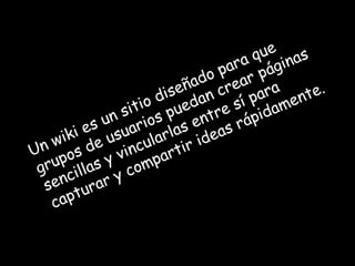Un wiki puede usarse a gran escala para compartir grandes volúmenes de información en una empresa, o a menor escala para recopilar y compartir rápidamente ideas sobre un proyecto en un sitio de grupo. Las páginas de un wiki pueden editarse directamente desde el navegador, donde los usuarios crean, modifican o eliminan contenido compartido. La principal utilidad de un wiki es permitir la creación y mejora inmediata de páginas a través de una interfaz sencilla, dando libertad a los usuarios y fomentando la participación